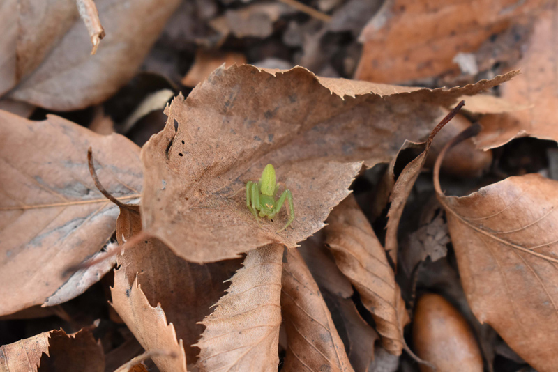 広場内に落ち葉の山がたくさんできています。よく見てみると生き物が見つかるかもしれません。