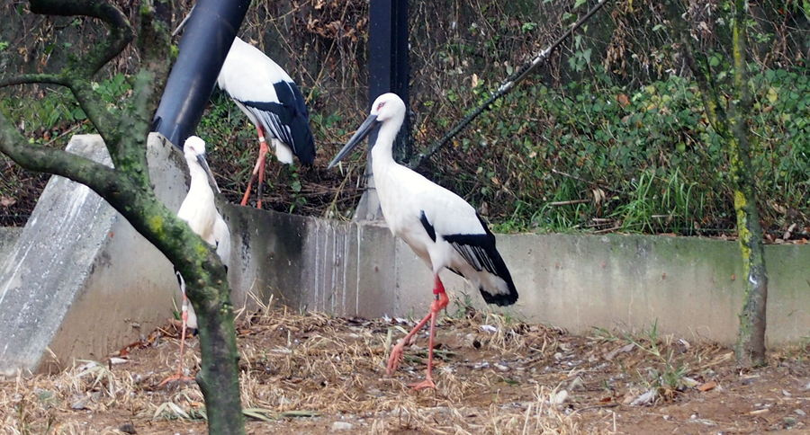 コウノトリは全国で野生復帰に向けて保全の取り組みが進められています。野生生物の保全に果たす動物園の役割を広く知っていただくために2017年12月25日に来園したこのニホンコウノトリは、水生物園(分園)のサギ舎で公開していました。
