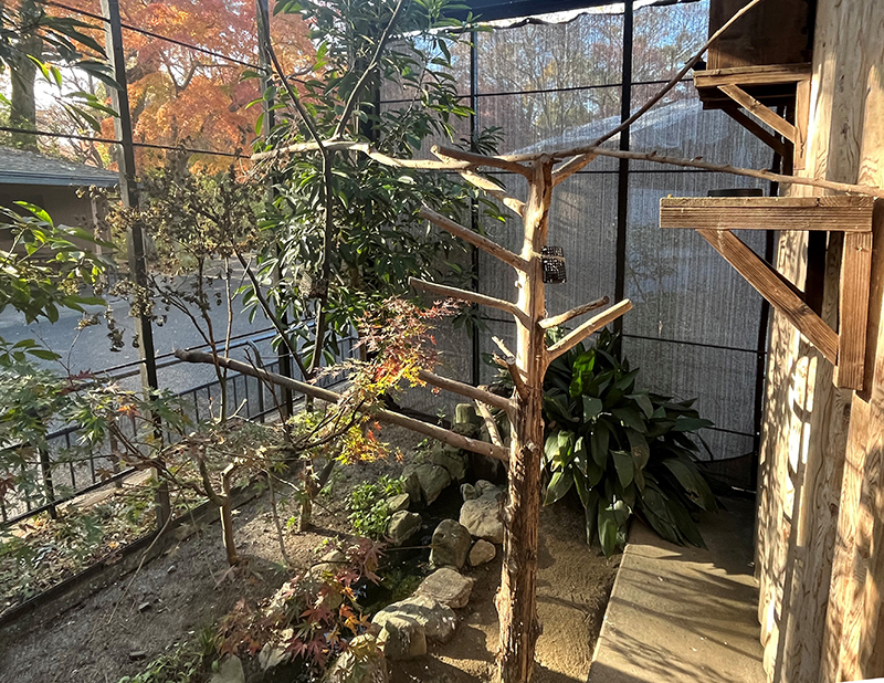 まずは環境づくりです。飼育経験豊富な職員からさまざまなアドバイスをもらい、部屋の大きさ、止まれる木の数、床の素材など、それらをひとつずつルリカケスに適した環境に近づけるようにしました。