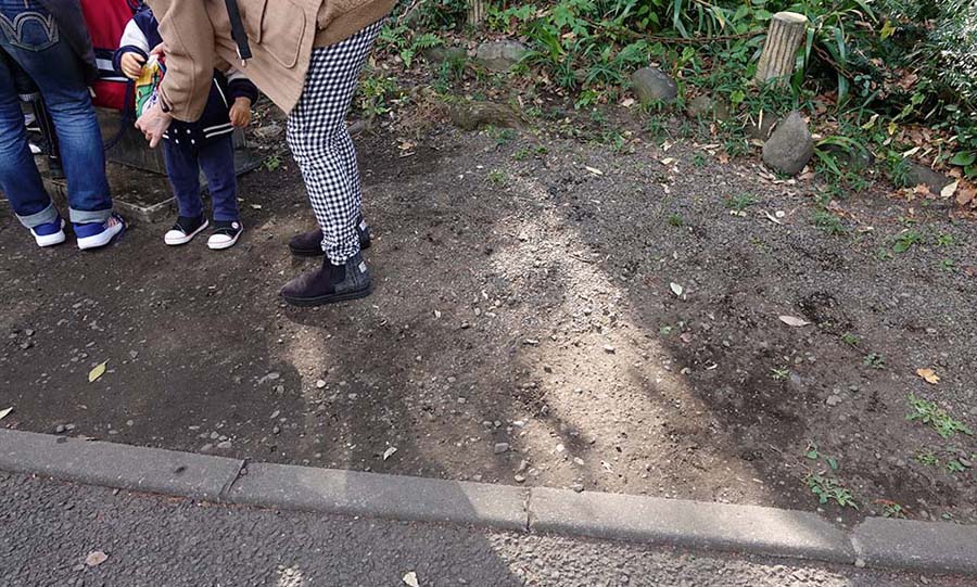 今回見つけたホタルミミズの生息場所。来園者が歩いているその地面の下にも発光生物がくらす