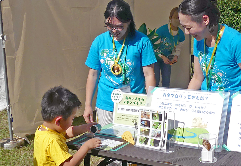 現地で活動するブース出展者は、それぞれの島の生きものの魅力をよく知り、現地の最新の興味深い話題を豊富にもっています。そういった方々と来園者との交流をもっと生みたいと考え、今年は各ブースをめぐる「島のいきものスタンプラリー」を開催しました。絵柄の異なるスタンプを集めるために参加者はブースを気軽に訪れます。その際出展者とのあいだで会話が生まれており、現地の生の声を聴いた参加者からは「もっと知りたい!島に行ってみたい!」という声が多く聞こえてきました。