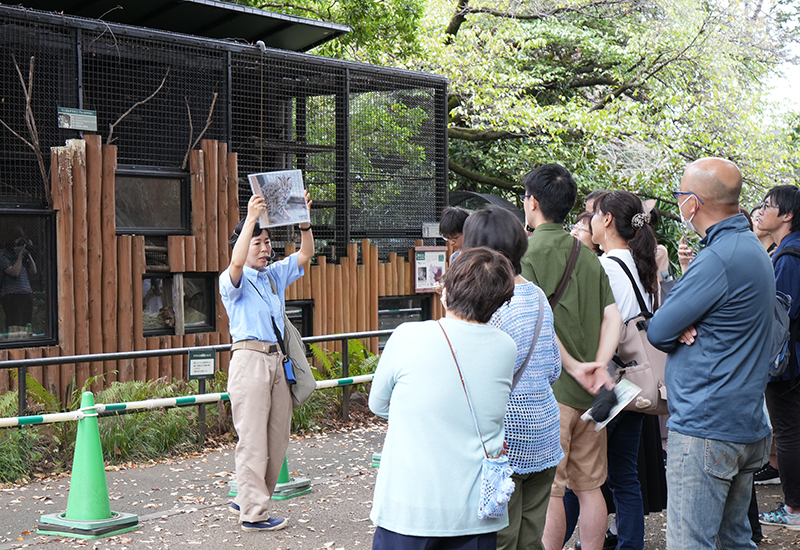 せっかく動物園で実施するので、飼育動物の観察を通して、さらに島の生きものたちの魅力を伝えていきたいと考えました。今年は島にすむ生きものをテーマに6種7回のガイドを実施し、島の特徴に合わせた独自の生態や、動物園での保全の取組みを伝えました。動物ガイドを通して現地の活動を紹介するブース出展に興味をもつ方、反対にブース出展を見て動物園の生きた動物を見たいと感じた方がいたので、動物園と現地の活動がうまくつながったと感じました。