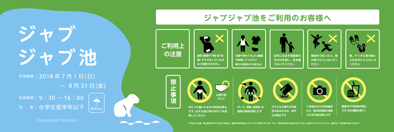 なお、ジャブジャブ池をご利用の際は、安全に楽しくご利用いただくため、以下のことをお守りください。