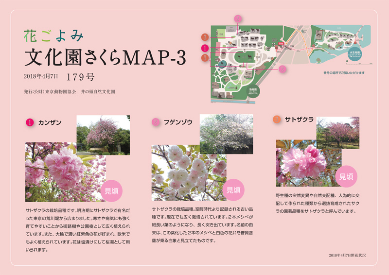 カンザン、フゲンゾウ、サトザクラが見ごろをむかえています。