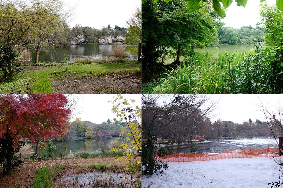 なんでもない井の頭池の風景ですが、この1年の間には、植物プランクトンのアオコが発生して水面が緑色に染まったり、かいぼりのために池の水が全部抜かれたり、水が抜かれた池の底に数年ぶりの大雪が積もったり、さまざまなことが起こりました。