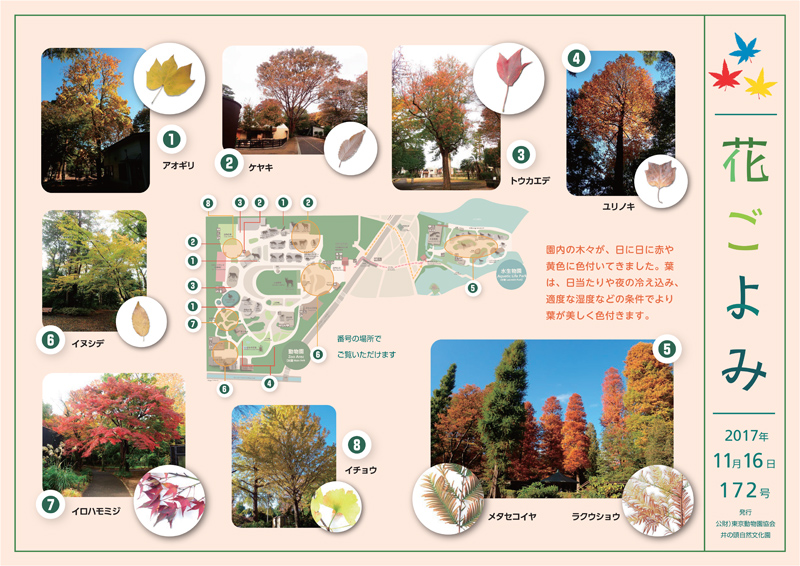 園内の木々が赤や黄色に色づいてきました(花ごよみ11/16号)