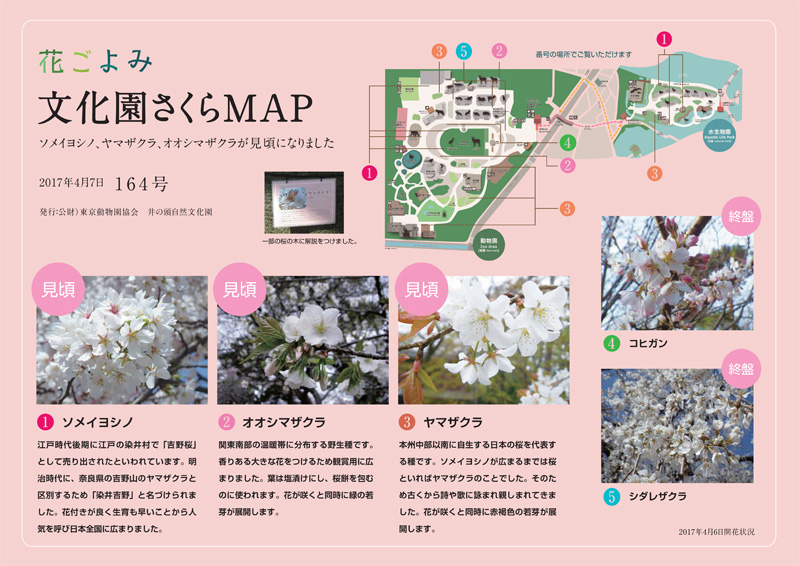 ソメイヨシノ、ヤマザクラ、オオシマザクラが見頃です(花ごよみ4/7号)