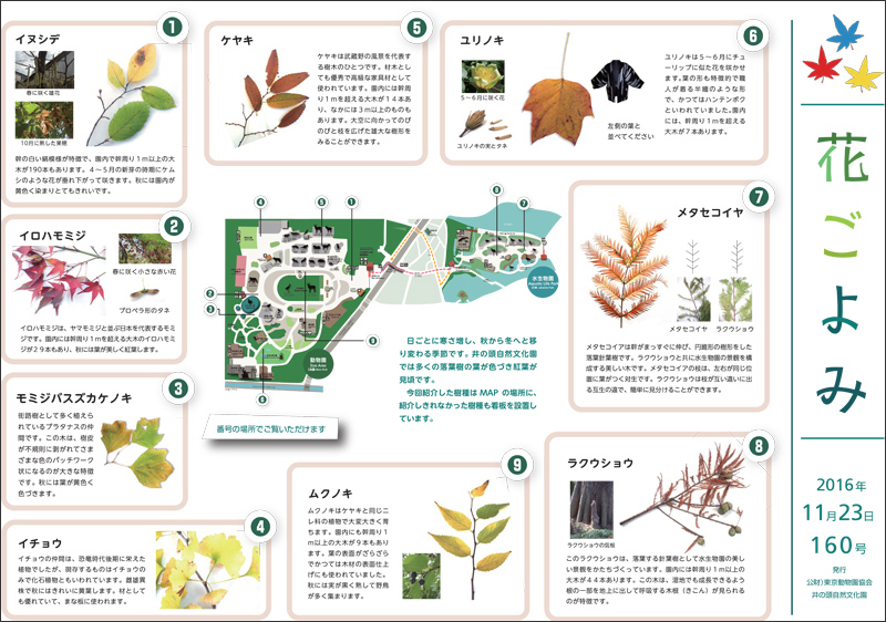 日ごとに寒さ増し、秋から冬へと移り変わる季節です。井の頭自然文化園では多くの落葉樹の葉が色づき紅葉が見頃です。