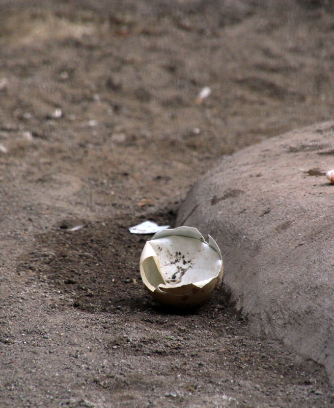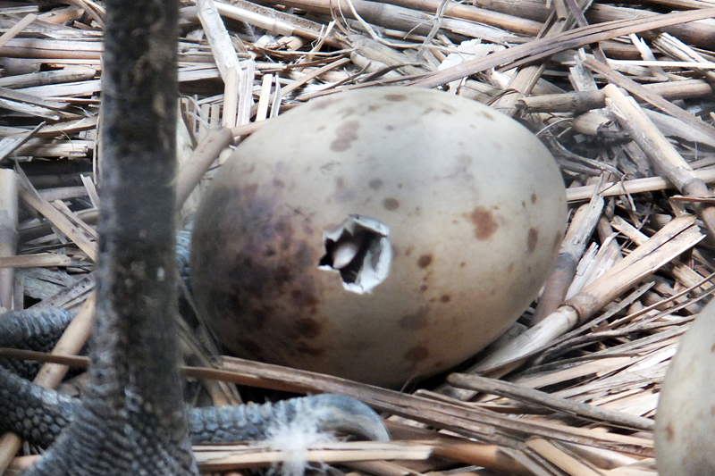 この日は見張りをしている親がグルグルと動き回り、落ち着きがなく、とても警戒していました。ひなは何時間もかけて少しずつ殻を割ります。元気な姿を見られますようにと祈りながら、20日を迎えました。