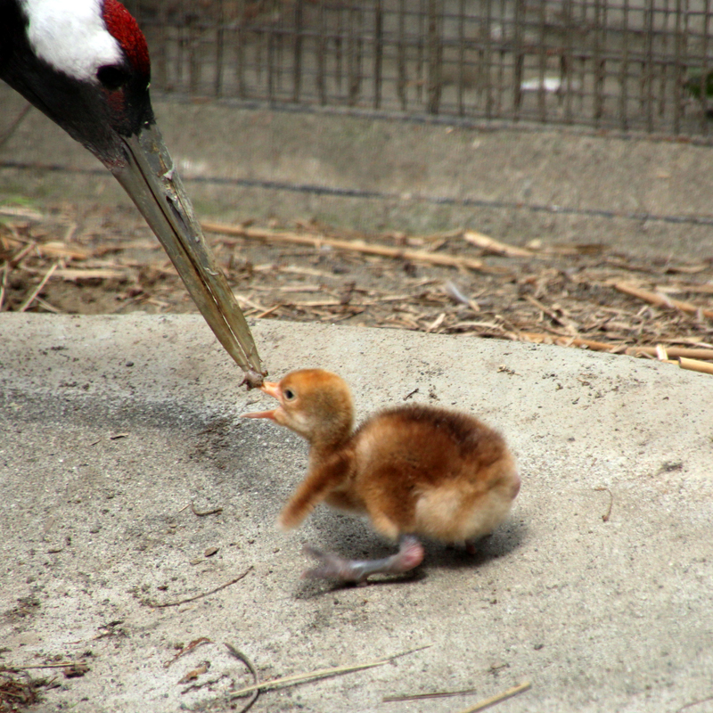 井の頭自然文化園の水生物園ではタンチョウのペアを飼育しています。前回お知らせした2個の卵が、2016年5月20日と21日に無事に孵化しました。