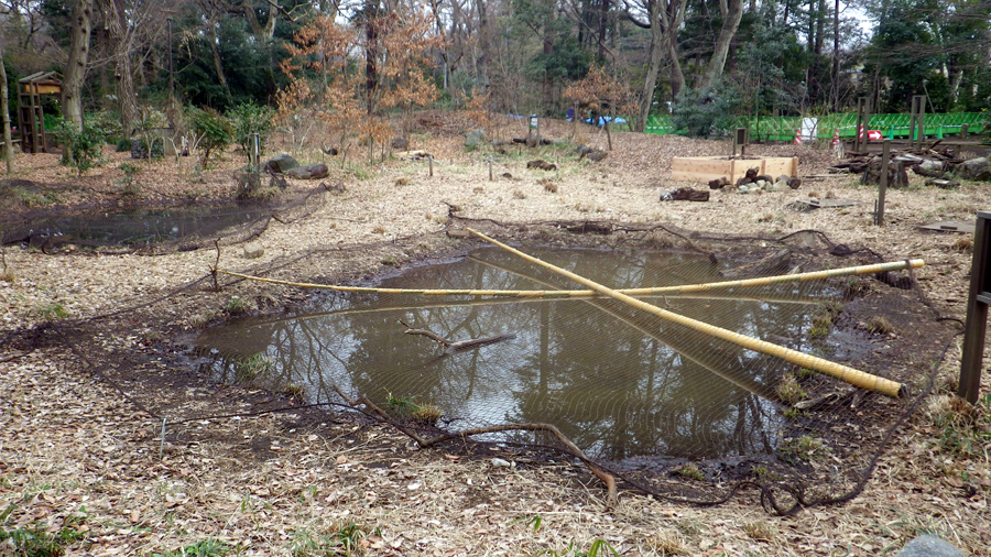 さてそんな中、池には……竹がわたされ、網がかかっています。