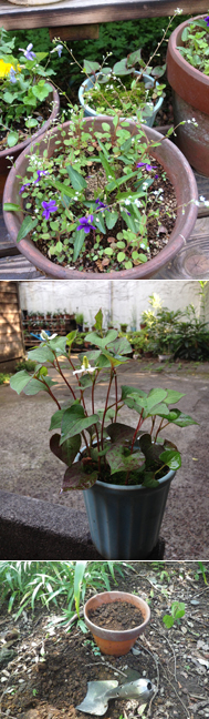 ものぐさ園芸のものぐさたる所以は、とにかく育てるために気を遣わないこと。来るもの拒まず、去るもの追わず。育て始めるとわかりますが、どんどんいろいろなものが生えてきます。取捨選択するもよし、全部まとめて育てるもよしです。
