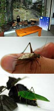 当初は園内にある野口雨情の書斎「童心居」の庭で鳴き声をお聞かせしようと考えましたが、まだキリギリスも元気な時期ですし、セミも大声を張り上げています。とてもセミの鳴き声に勝てそうにないので、セミが静かになる時期までは資料館内で展示することになりました。