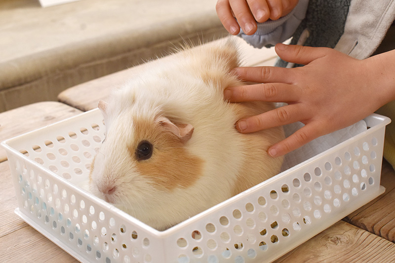 はじめてのおともだちも、そうでないおともだちも、やさしくモルモットにふれてみましょう。