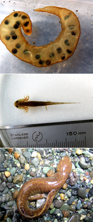 すでに卵をもった野生のトウキョウサンショウウオを採集し、それが飼育下で産卵することは珍しいことではありません。しかし、飼育下でずっと育てていた親が産卵に成功するのはとても珍しいことです。水生物館でも、ここ数年は毎年産卵が確認されていましたが、卵が発生したことはありませんでした。