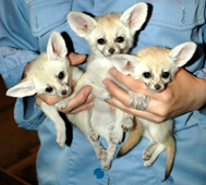 生まれたばかりのフェネックの赤ちゃんは、体重が30~40グラムぐらいしかなく、体毛はうすく、目も耳も開いていません。一日に何度かおっぱいを飲むほかは、寝ているばかりです。それが約1か月で体重 150グラムほどにまで成長しました。すでに離乳が始まり、少し前までは母親が巣箱に持ち帰った餌を食べていましたが、今では自力で歩いて餌を食べに出てくるようになりました。