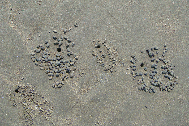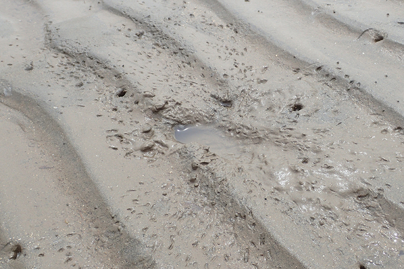 いざ、干潟へ歩き出しても一見すると何もいないように見えるかもしれません。しかし、踏み入った足元の砂の上にはたくさんの穴が見つかるでしょう。