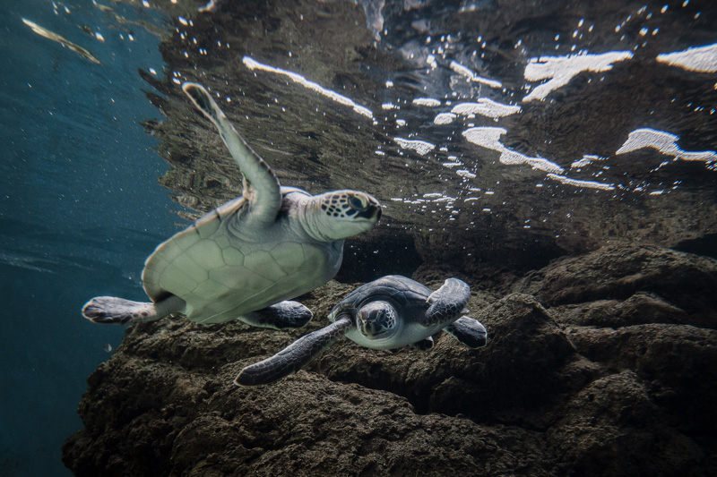 (左:アオウミガメ①、右:アオウミガメ②)