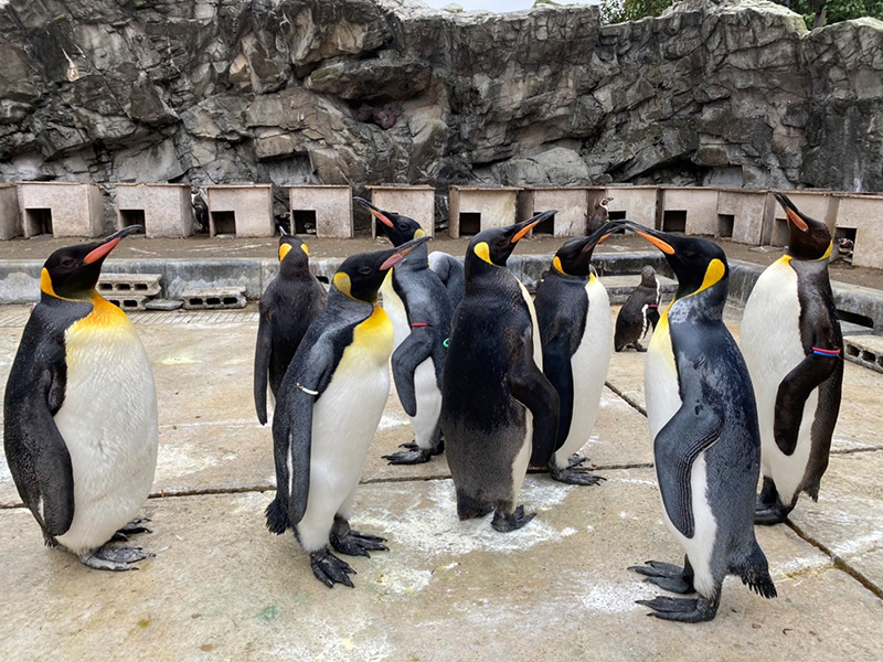 クルルの死亡後、当園で飼育しているオウサマペンギンは9羽(オス4、メス4、不明1)になりました。