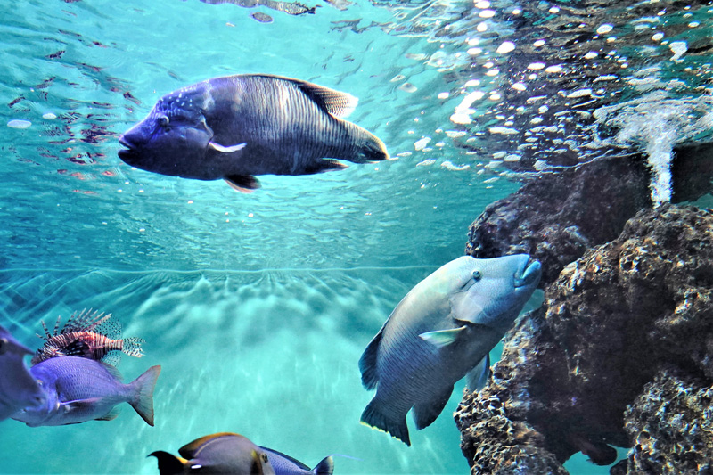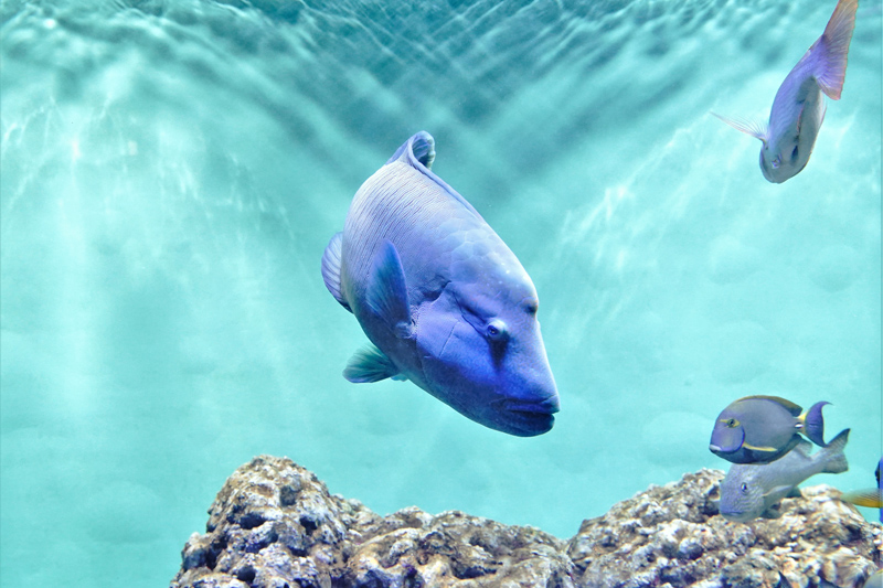 メガネモチノウオという名前にあまり聞き覚えがないかもしれませんが、別名の「ナポレオンフィッシュ」はご存じの方も多いのではないでしょうか。また、性転換する魚として知られており、メスとして成熟した後、群れのなかで体の大きな個体がオスになります。