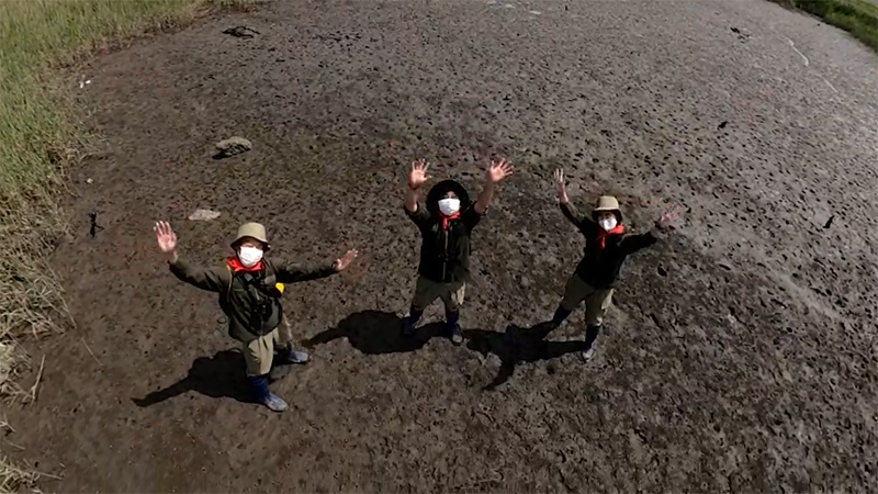 トビハゼ調査隊の隊長と隊員たちが、トビハゼ観察のポイントを動画で紹介