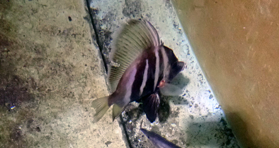 今回のカワビシャは水族園にきて10日目にえさを食べ始めました。飼育スタッフによると、一度食べるとそれまでの10日間がウソのように食べるようになったとのことでした。少し切れていた背びれの状態もかなりよくなりました。