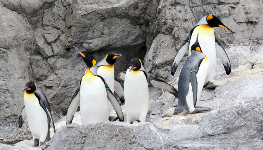 オウサマペンギンは南極近くの涼しい気候の島でくらしています。かれらにとって日本の夏はすごしにくいため、例年、葛西臨海水族園では5月中旬から「繁殖」と「避暑」を兼ねて冷房完備の部屋に移しています(