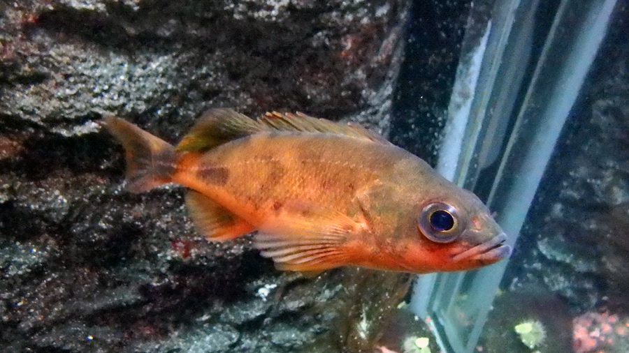 こうして無事展示に仲間入りしたピュージェットサウンドロックフィッシュは、赤みがかった体色と真っ黒な目が特徴的で水槽ではよく目立ちます。水槽をにぎわす新顔にご注目ください! さらに、水槽のすみずみにも目を向けて、じっくりと水槽観察を楽しんでください。