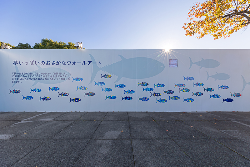 ワークショップでつくった「夢のおさかな」は全部で200匹。11月13日にこの200匹を仮囲いに貼り付け、「夢いっぱいのおさかなアート」が完成しました。アートはおおむね1年程度、掲出する予定です。みなさんの個性が詰まったウォールアートをぜひお楽しみください。