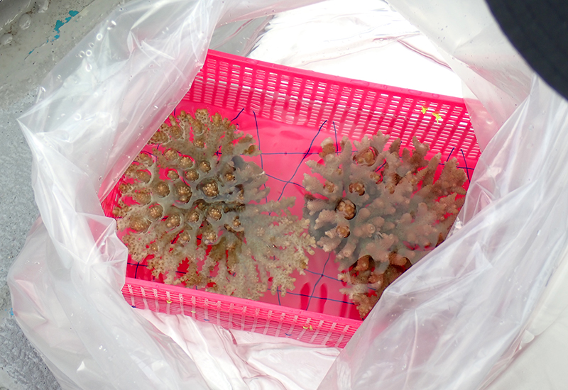 サンゴを輸送するようす。再導入をできるように集める場所を限っている