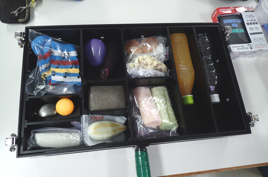 「かいこう」浮上後、子どもたちは採集したナマコらを間近で観察し、どんな体をしているかスケッチもしました。また、水圧による変化を観察する「いろいろなものを沈める実験」の結果も確認しました。沈めたものは空のペットボトルのほか、こんにゃくやナス、粘土などです。縮んだもの、変わらなかったもの、深海では潰れていたのに元に戻ったものなど、それぞれの結果について予想通りだったか、なぜそうなったのか話し合いました。