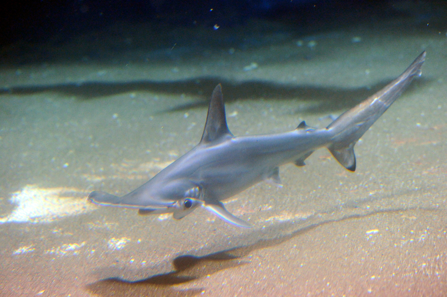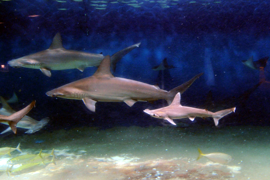 2018年5月28日、葛西臨海水族園の「大洋の航海者 サメ」水槽に全長70センチ前後のアカシュモクザメ8尾が仲間入りしました。アカシュモクザメは全長40~50センチほどで生まれてくるとされ、今回追加した個体は今年の春生まれた幼魚と思われます。