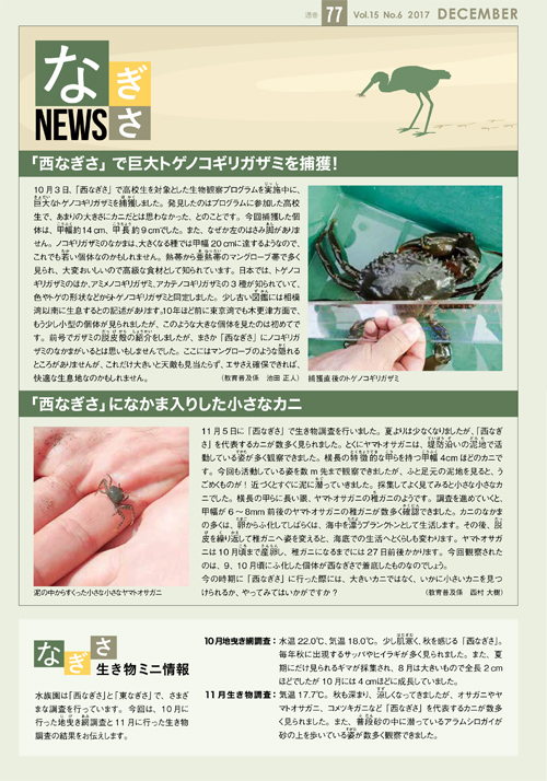 その調査結果や観察会のようすなどをお伝えするのがこの「なぎさNEWS」。水族園の機関誌「SEA LIFE NEWS」のコーナーです。