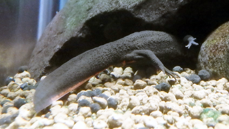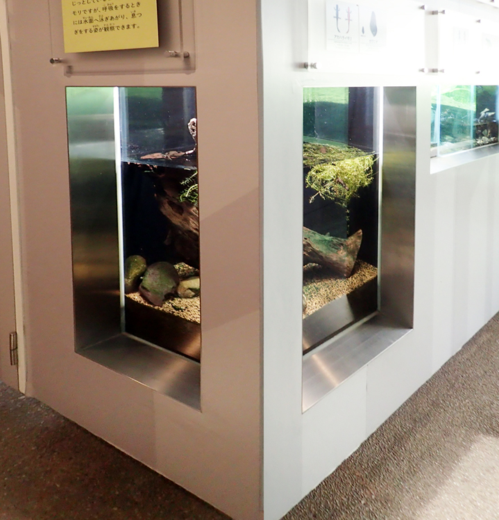 葛西臨海水族園「水辺の自然」エリア「池沼」内にある水辺の生き物水槽では、アカハライモリの成体を展示しています。アカハライモリは本州から四国、九州まで広く分布する、日本固有の両生類の一種です。