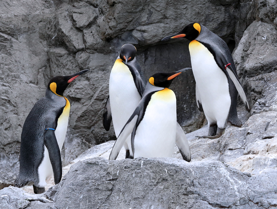 オウサマペンギンとミナミイワトビペンギンは、南極近くの涼しい気候の島でくらしています。かれらにとって日本の夏はすごしにくいため、例年、葛西臨海水族園では5月中旬から冷房完備の部屋に移して「避暑」をさせています。