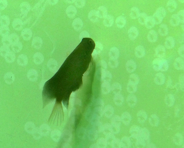 さて、この水槽では朝、壁に直径1センチ弱のキスマークがよくついています。
