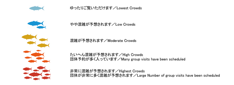 みなさまが快適に園内をご観覧いただけるよう、過去の来園者数や団体利用予定から混雑状況を予想した