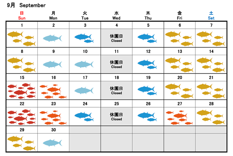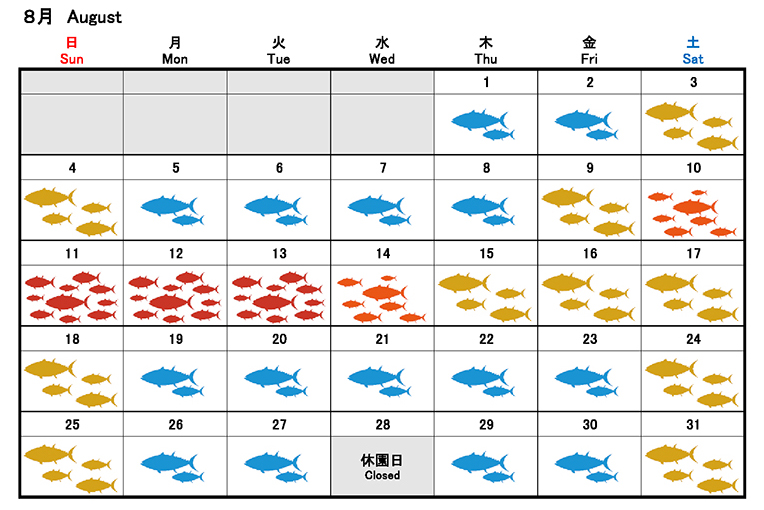 混雑予想カレンダーをご用意しました。ご来園の予定を立てる際にはぜひご活用ください。
