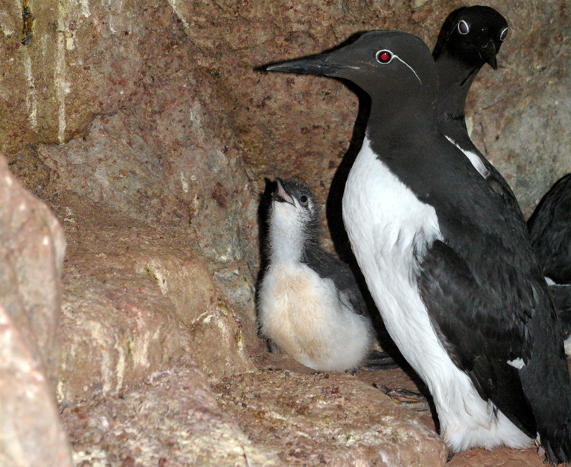 葛西臨海水族園「海鳥の生態」エリアでウミガラスのひなが2015年8月7日に生まれました。今なら子育てのようすが見られます。