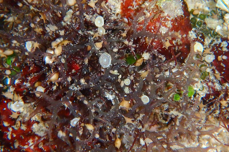 海藻に着生するホシズナ、タイヨウノスナ、ゼニイシ