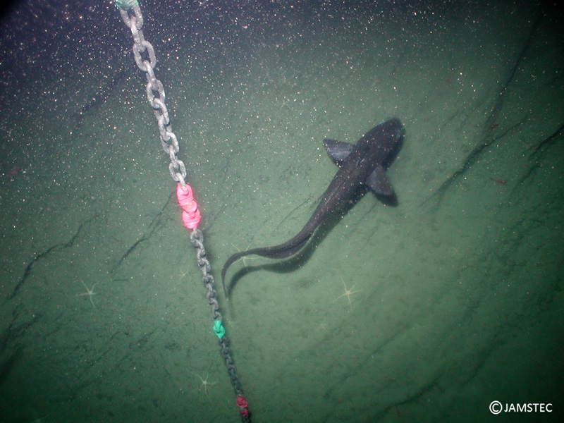 次に調査したのは、伊豆半島沖の石廊海底谷(いろうかいていこく)という地点です。歴代の KOOHOO航海地点の中でも、ここは最も深く、水深1,699メートルまで調査しました。その地点の水温はなんと2.2℃。水圧はおよそ171気圧にもなります。過酷な環境ですが、クモヒトデのなかまやソコダラのなかまなどを観察することができました。