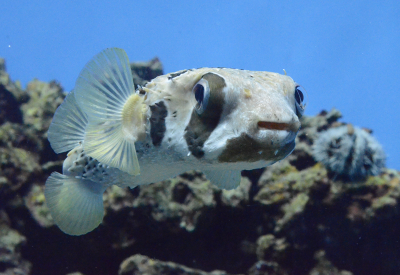 「東京の海」エリアの「小笠原(礁)」水槽では、ハリセンボンの一種である「ヒトヅラハリセンボン」を展示しています。