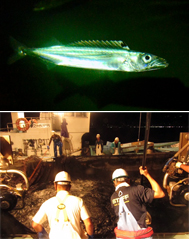 その名は「カゴカマス」。カマスを名乗ってはいますが、じつはサバに近いなかまで、成長すると全長40センチほどに達します。インド洋・太平洋の熱帯から温帯に分布し、おもに水深約100~500メートルに生息しています。