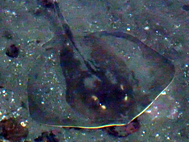 葛西臨海水族園の東京の海エリア「渚の生物」水槽で、2014年7月20日からアカエイを1尾展示しています。アカエイは国内では南日本沿岸に分布し、東京湾でもよく見られる身近なエイです。砂泥底に生息し、小型の魚やカニなどを食べ、成長すると体の幅(体盤幅)が50センチほどにもなります。また、尾には身を守るための毒トゲがあるのも特徴の一つです。