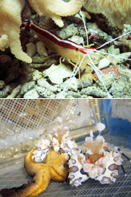 一方、フリソデエビはヒトデの上にいることがよく観察されますが、こちらも掃除をしているのでしょうか? じつはヒトデを餌として食べているのです。フリソデエビについては以前のニュースで紹介しました。