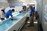より多くの方が参加しやすく、観察や体験ができるよう水槽を拡張(長さ:約14m×幅:約1m)しました。また、入口および出口の「手洗い場スペース」を拡張し、蛇口を増設することでよりスムーズにご利用いただけるようになります。