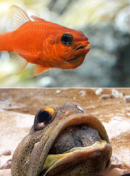 写真上:下アゴがふくらんだカーディナルフィッシュ