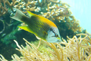 葛西臨海水族園世界の海コーナーの「グレートバリアリーフ」水槽では、暖かいサンゴ礁のいろいろな生き物たちが見られますが、その中でベラのなかまとして「ギチベラ」を展示しています。