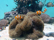 これまで2回に渡ってお知らせした葛西臨海水族園世界の海エリア「インド洋」水槽のカクレクマノミですが、現在3尾を展示し、イソギンチャクとの共生関係を見ることができます。