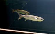 先日、葛西臨海水族園の「渚の生物」水槽に全長約60センチメートルのボラが登場しました。ひとまわりかふたまわり小型のボラに交じって、水面近くを悠々と泳ぐ姿が見られます。